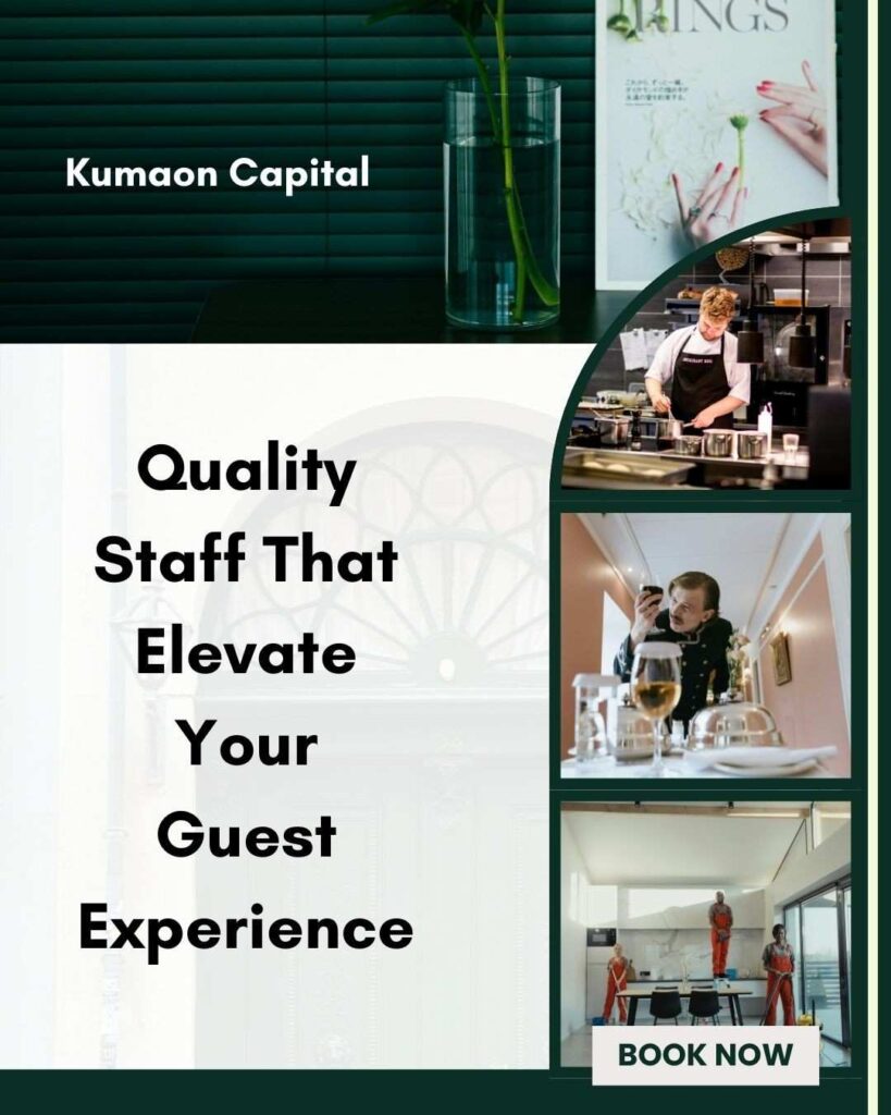 If you’re looking to elevate your hotel’s service quality, Kumaon Capital provides experienced hotel staff, from front desk personnel to housekeeping, ensuring seamless operations.