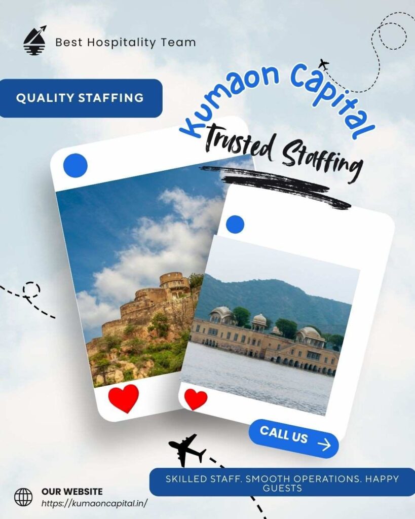 Kumaon Hospitality Staffing Services deliver skilled and reliable professionals who enhance hotel, resort, and homestay operations. At Kumaon Capital, we actively provide trained cooks, waiters, managers, and support staff who integrate smoothly into your service environment. Moreover, our team ensures professionalism, efficiency, and consistent quality in every task. As a result, your property runs seamlessly, and guests enjoy a superior experience. Furthermore, we tailor each staffing solution to your specific needs, helping you improve service standards, streamline operations, and build a strong hospitality reputation.